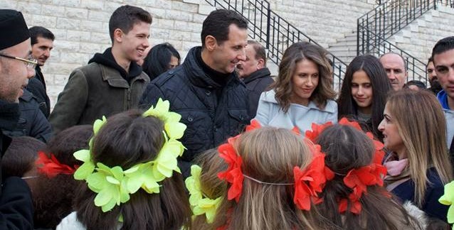 بشار الأسد و أولاده يزورون ” دير سيدة صيدنايا ” بمناسبة عيد الميلاد ( صور )