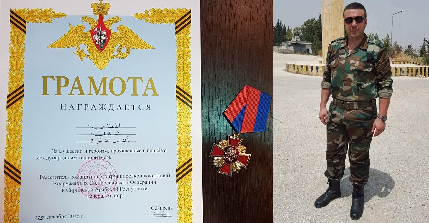 نائب قائد قوات الاحتلال الروسي في سوريا يمنح ” الإعلامي شادي حلوة ” وسام شجاعة و شهادة تقدير