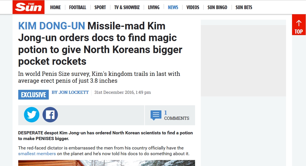 يعيش رئيس كوريا الشمالية يعيش يعيش يعيش ، واخيراً فكّر في اختراع شيء مفيد للبشرية ، للمعلومية لا اعتقد ان 18 سم اكبر الاعضاء الذكرية البشرية فمتوسط العضو الذكري هو بين 15 – 18 سم ، يعني انا مرة قستو 17.5 سم واصدقائي بمقاسات مقاربة وفي 18 سم ، فالمعيار في المقال اعتقد انه خطأ