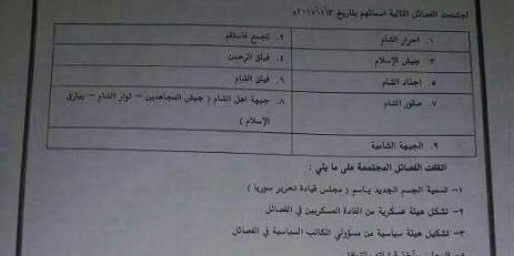 كبرى الفصائل المعارضة تتحد تحت مسمى ” مجلس قيادة تحرير سوريا ” بعيداً عن النصرة .. و قيادي في أحرار الشام : لا زالت ” مسودة ” و ليست اندماجاً