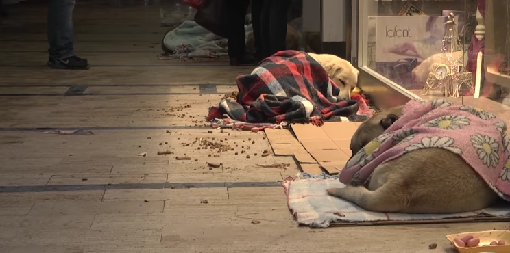 كلاب اسطنبول يحصلون على عناية خاصة من قبل المواطنين في ظل العواصف الثلجية المستمرة ( فيديو )