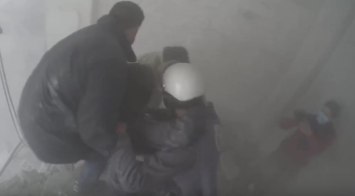 دمشق : لحظة استهداف طائرات بشار الأسد للدفاع المدني في مدينة عربين أثناء إسعافهم لأحد المدنيين ( فيديو )