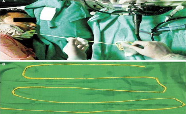 وبعد تخدير المريض قام فريق من مستشفى ومركز علوم الكبد والقنوات الصفراوية بمدينة نيودلهي الهندية، من استخراج الدودة بسحبها من فم المريض باستخدام ملقط جراحي.