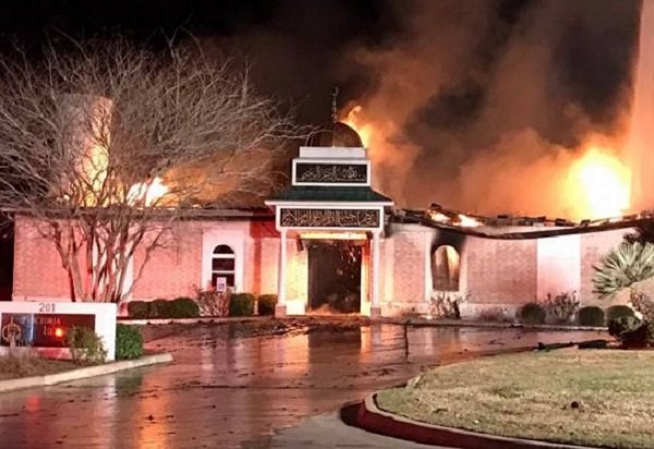 بالتزامن مع قرارت ترامب و ردود الأفعال المناهضة لها .. إحراق مسجد في ولاية تكساس الأمريكية ( فيديو )
