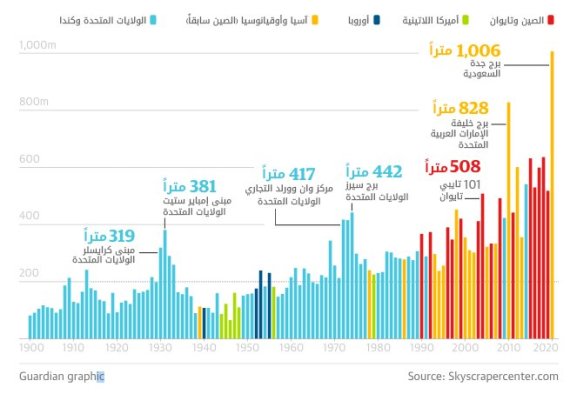 ومنذ عام 1990، سيطرت آسيا على مجال بناء ناطحات السحاب، ولم تفز الولايات المتحدة بلقب “أطول مبنى في العالم” سوى ثلاث مرات.