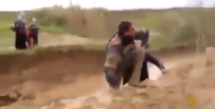 وسط صراخ و بكاء أطفالهم و نسائهم .. عناصر من البيشمركة يعتدون بالضرب على نازحين من الحويجة و يشتمون العرب ( فيديو )