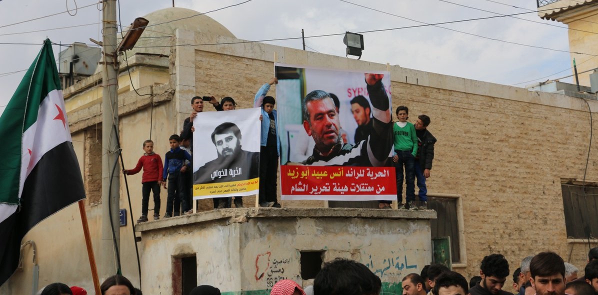 وطالب المتظاهرون الجبهة بالإفراج على كل من الرائد أنس ابراهيم، وهو ضابط منشق وقيادي في الجيش الحر، وأبو عبد الله الخولي القيادي في حركة حزم.