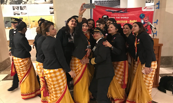 أعلنت شركة الطيران الوطنية الهندية أنها سجلت رقما قياسيا عالميا جديدا بأول رحلة حول العالم بطاقم نسائي بالكامل.