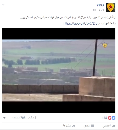 وحدات الحماية الكردية تنشر ما قالت إنه ” فيديو لتدمير دبابة مرتزقة درع الفرات من قبل قوات مجلس منبج العسكري ”