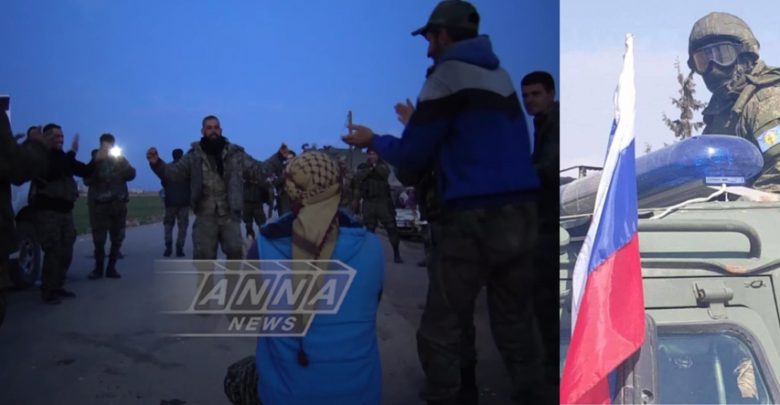 حلب : ميليشيات النظام و روسيا ترفع أعلامها و ترقص في مناطق سيطرة الوحدات الكردية بمحيط منبج .. و الروس يرتدون زي ” المجلس العسكري ! ( فيديو )