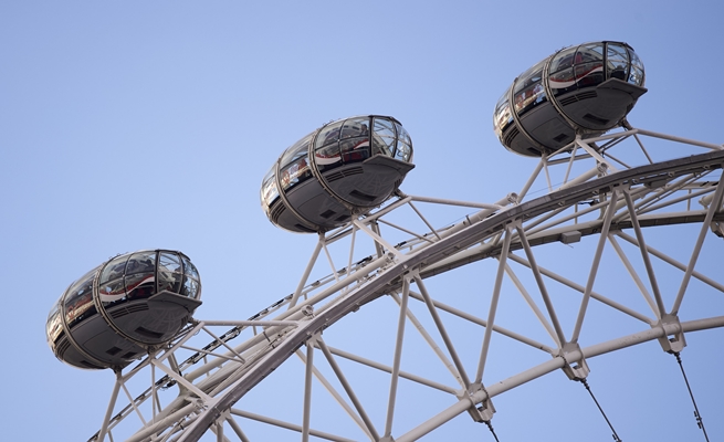 ويمكن للشخص وهو راكب عجلة لندن العملاقة أن يرى كثيرا من الأشياء حتى مسافة 40 كيلومترا في البحر المتوسط، وأيضا رؤية بعض المعالم البارزة الشهيرة مثل كاتدرائية سنت بول وقصر وستمنستر وقلعة وندسور. ويوجد بهذه العجلة 32 كابينة صغيرة يمكنها أن تحمل 15 ألف زائر يومياً.