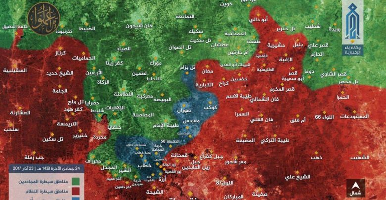 ↓ جيش العزة – الجيش الحر : “السيطرة على أجزاء واسعة من استراد محردة السقيلبية”