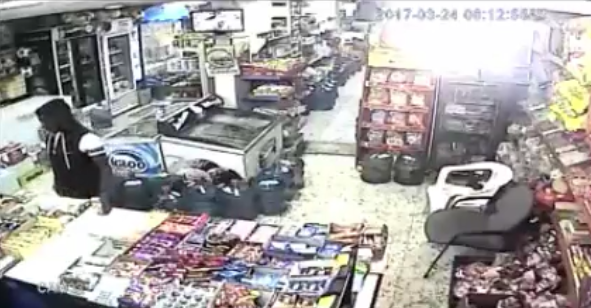 وأظهر مقطع فيديو وثقته إحدى كاميرات المراقبة الموجودة داخل المحل، ثلاثة أشخاص يدخلون البقالة، ويتظاهرون بشراء بعض الأغراض قبل أن يقوم أحدهم بالهجوم على البائع وشل حركته، بينما بدأ الثاني بضرب البائع بالساطور وفتح درج النقود وسرقة ما به.