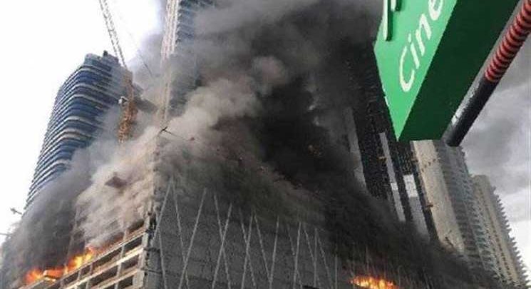 اندلع حريق، صباح الأحد، في برج قيد الإنشاء بالقرب من “دبي مول” الذي يقع ضمن مجمع برج خليفة في الإمارات (الأطول في العالم).