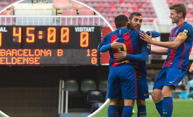 وعادل برشلونة “بي” الذي أنهى الشوط الأول بنتيجة 8-صفر، الرقم القياسي لأكبر فوز في تاريخ الدرجة الثالثة، وأصبح على المسافة ذاتها من اكستريمادورا الذي تغلب على بورتوينسي بالنتيجة ذاتها في ايار/مايو 1992.