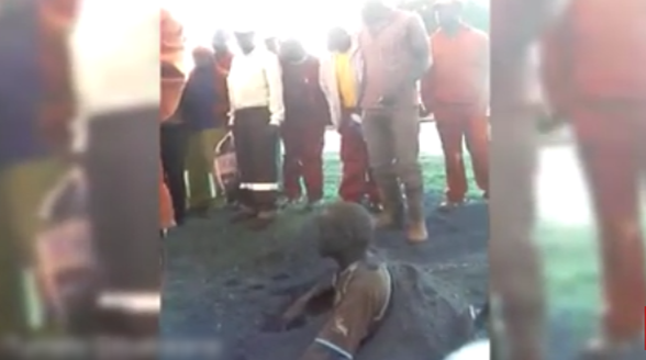 جنوب أفريقيا : جمع غاضب يجبر لص على حفر قبره ثم يدفنه حياً ! ( فيديو )