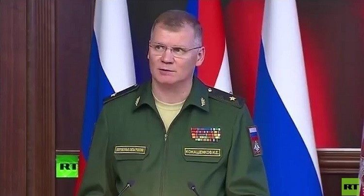 صرح المتحدث باسم وزارة الدفاع الروسية بأن “القوات الجوية السورية قصفت مستودعا للذخيرة تابعا للإرهابيين في خان شيخون بريف إدلب، يحتوي على أسلحة كيميائية وصلت من العراق”.