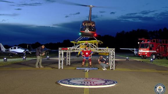 حقق رجل نمساوي قوي يدعى فرانز مولنير رقماً قياسياً في رفع الأثقال ودخل بذلك موسوعة غينيس للأرقام القياسية بعدما تمكن من رفع طائرة حوامة ضخمة على كتفيه محطماً بذلك الرقم القياسي في حمل أثقل وزن على الكتفين.