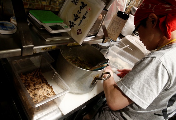 وفي احتفال بمناسبة تقديم الصحن قدم المطعم “حشرات تسوكيمن” حيث يغمس الزبائن شرائح المعكرونة في حساء من اختيارهم يحوي صراصير أو جنادب ومسحوق دود القز.