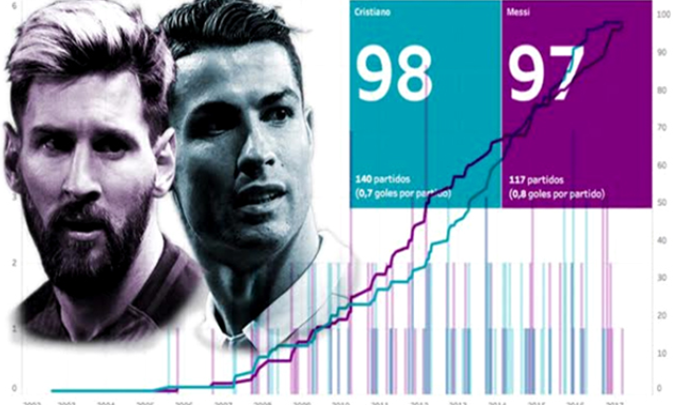 هذا ودخل الهدافان الأمتار الأخيرة لهذا السباق، بعدما وصل رونالدو إلى 98 هدفاً سجلها مع ناديي مانشستر يونايتد وريال مدريد، بينما احرز ميسي 97 هدفاً سجلها بقميص نادي برشلونة دون غيره.