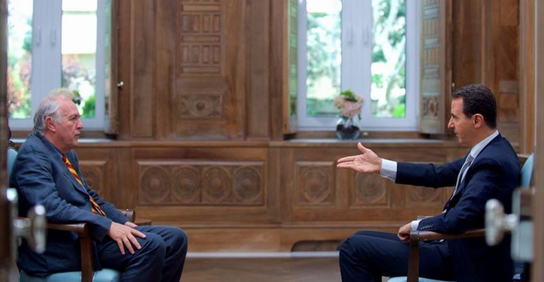زعم بشار الأسد في مقابلة حصرية لوكالة فرانس برس في دمشق، ان “الهجوم الكيميائي” على مدينة خان شيخون، “مفبرك” تماماً بهدف استخدامه كـ”ذريعة” لتبرير الضربة الاميركية على قاعدة جوية للجيش.