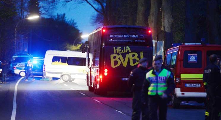 وانفجرت ثلاث عبوات ناسفة تحتوى على قطع معدنية يوم الثلاثاء الماضي بعد أن غادر فريق دورتموند الفندق متوجها إلى ملعب سيجنال ايدونا بارك لملاقاة فريق ايه سي موناكو الفرنسي في بطولة دوري أبطال أوروبا.