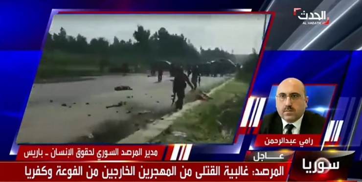 مدير المرصد السوري بعد التفجير الإرهابي الذي راح ضحيته عشرات الشهداء و الجرحى في حلب : ليخرج كل من هو غير سوري من سوريا سواء كان مع النظام أو المعارضة ( فيديو )