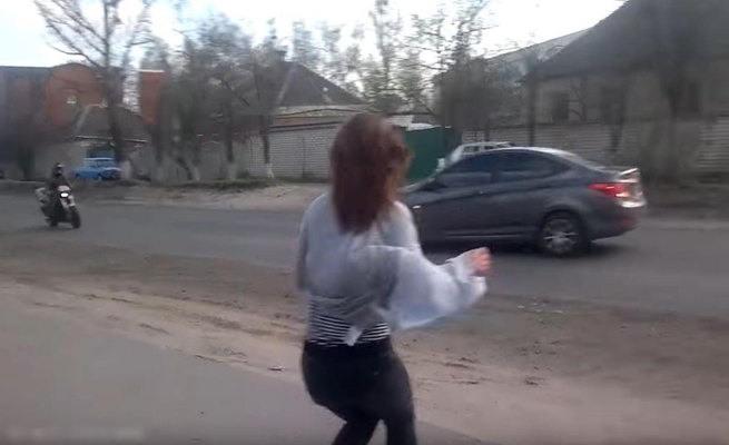 انتشر فيديو على وسائل التواصل الإجتماعي، يظهر إحدى الفتيات الأوكرانيات تقوم برقصة مثيرة إلى جانب طريق للسيارات.