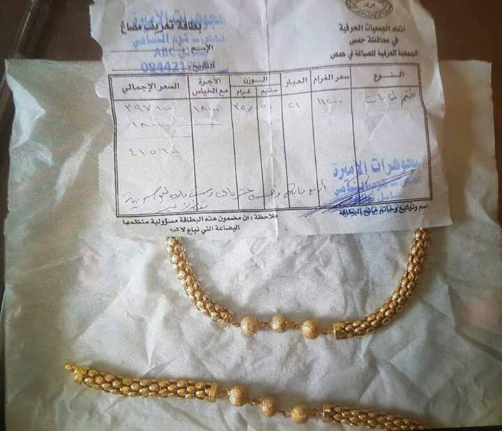 نقلت وسائل إعلام موالية عن نقيب الصاغة “غسان جزماتي” قوله، إن “حالة احتيال سجلت يوم أول أمس السبت حين أقدم أحد المواطنين على بيع صائغ في شارع الباكستان بدمشق قطعتين ذهبيتين من طراز واحد ليتبين لاحقاً أن القطعتين مصنوعتان من النحاس ولكنهما مطليتان بماء الذهب غطساً”.