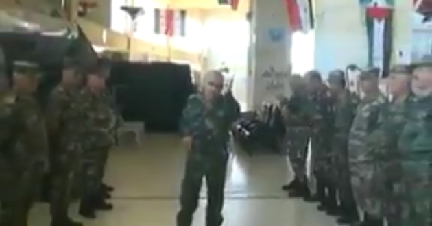” الدين أخلاق الدين تقية و توجوا حياتكم بالجهاد ” .. لواء في جيش بشار الأسد يستبدل محاضرات التوجيه السياسي و المعنوي بخطبة جمعة ( فيديو )