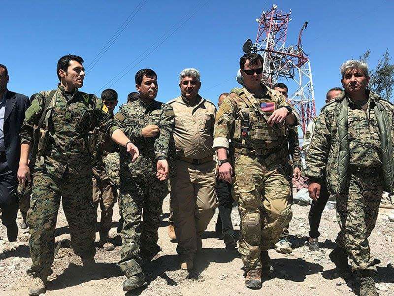 وتناقل ناشطون صوراً تظهر ما قيل إنه المكان المستهدف بالقصف، وأخرى تظهر ضابطاً أمريكياً يرافق قياديين من الوحدات، بينهم ريدور خليل الناطق الرسمي باسمها، ويطلع على نتائج القصف.