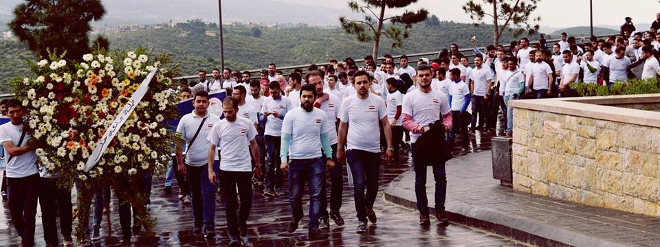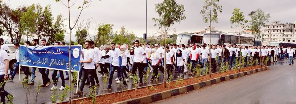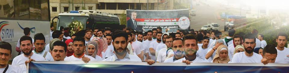 في محاولة جديدة لربط سوريا وكل ما يتعلق بها بالأسد الأب والابن، احتفل طلاب موالون من جامعة حلب بـ “عيد الجلاء” (17 نيسان)، بزيارة قبر حافظ الأسد.