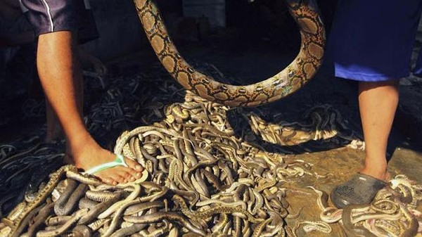 وهو كان ينقل في المجموع 26 أفعى من أفاعي رأس الحربة، و33 صرصورا، و11 سحلية، و16 ضفدعا، من بينها 10 سامة، في أوعية بلاستيكية داخل حقيبة يحملها على ظهره.