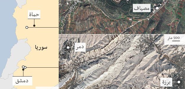 وتقول الوثيقة الاستخباراتية، بحسب ما نقلت BBC، إن الأسلحة الكيمياوية السورية تصنع في ثلاثة مواقع وهي: مدينة مصياف بمحافظة حماة، وضاحيتا برزة ودَمَر خارج العاصمة دمشق.
