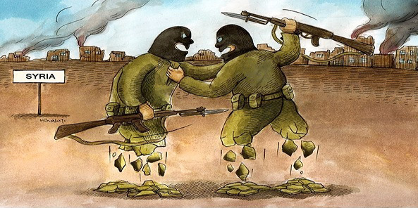 ما يسمى بالتنظيمات ( الجهادية ) فهؤلاء القوم لا يمثّلون إلا أنفسهم ولا يمثلون الاسلام أو يتكلّمون باسمه أبداً فاختلاف الأهداف التي يعملون من أجلها وكذلك أختلاف المموّلين لهذه الجماعات تثبت بالدليل القاطع أن ما يحدث في سوريا ان هي الا مؤامرة صهيونية عالمية هدفها ليس فقط تدمير سوريا واخراجها من معادلة الصراع الوجودي مع اسرائل مغتصبة الأقصى وفلسطين فحسب بل تدمير كل الدول العربية ذات التأثير المباشر على وجود الكيان الصهيوني العنصري في فلب الأمة العربية , إن اسرائيل والدول الأوربية وبريطانية وأمريكا في الواقع لم يستغلوا تلك القوى الغوغائية العمياء لصالحهم لأنهم في الواقع هم من أوجدوهم على الساحات العربية وهم من يمدونهم بالسلاح والمال والدعم اللوجستي إما بشكل مباشر أو عن طريق عملائهم في المنطقة من بني عكال أعاريب الكفر والنفاق واللواطة , ولننظر الى أوضح وأفصح الأدلّة التي تجري علناً على الساحة العربية بحيث أن الأعمى قادر على رؤيتها فتلك الجماعات تتصارع فيما بينها على النفوذ وعلى المال المُلقى اليهم من مموليهم كما تلقى قطعة عظم الى كلب هائج فضلاً عن اختلاف الهدف بحسب أوامر المستفيد من ذلك الصراع ونتيجته النهائية أضف الى ذلك آلاف المليارات من الدولارات التي سفحها آل سعود تحت أقدام المقامر العجوز والبرجوازي الأمريكي المقامر الجشع دونالد ترامب لشراء الرضى ولو على حساب الدين وكرامة أمة بأسرها ولو أن تلك المليارات لكافية بأن تجعل منطقة الشرق الأوسط وأهله برمته في أحسن حال وعلى كافة الأصعدة أليس ذلك قمة العمالة والقذارة والانحطاط !!!