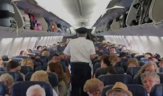 والتقط أحد المسافرين على متن الرحلة ونشرها على موقع فيسبوك، ليكسر بذلك سلسلة فديوهات صادرة من داخل الطائرات الأميركية خلال الفترة الماضية حفلت بشجارات وسحل ودماء مسالة.