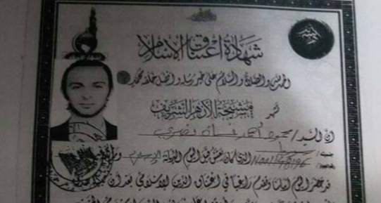 وتضمنت وثيقة إشهار الإسلام: “حضر إلينا السيد محمود غسان، الجنسية سوري، وتقدم بكامل إرادته لاعتناق الدين الإسلامي ونطق الشهادتين، ومن خلال مناقشته عن خصائص الدين الإسلامي، وتبرأ من كل ديانة كان يعتنقها من قبل”.