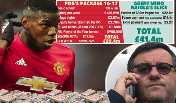 وبحسب التسريبات، فإن رايولا يتحصل بشكل إجمالي من صفقة بوغبا على 41.4 مليون جنيه إسترليني تتوزع على 22.8 مليون باوند ، إذ تبلغ حصته من مبلغ الصفقة ما يصل إلى 89 مليون باوند ، فضلاً عن حصوله على 16.4 مليون جنيه في حال تم بيع عقد بوغبا بأكثر من 90 مليون يورو، وهو ما تحقق بالفعل، بالإضافة إلى مليون يورو، وحافز مالي آخر قدره 2.2 مليون باوند تحت بند مكافأة خاصة .