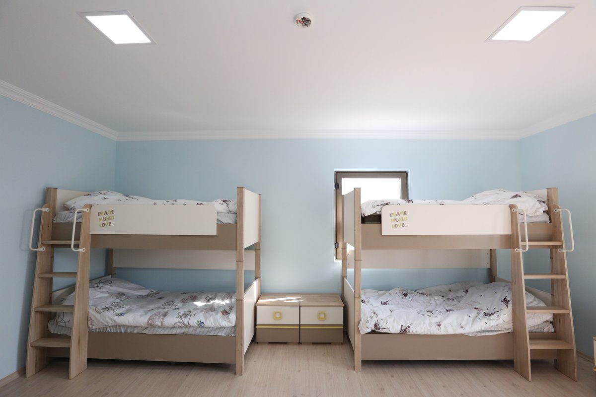 ويضم المركز الذي تم تجهيزه بشكل خاص، 35 منزلا للذكور، و20 للإناث على شكل فلل، مساحة كل واحد منها 350 مترا مربعا، مؤلف من طابقين اثنين، ويتسع لـ 18 طفلا.
