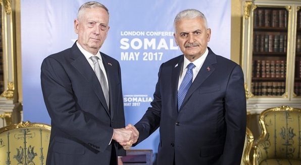 واجرى ماتيس محادثات لنصف ساعة مع رئيس الوزراء التركي في اول لقاء بهذا المستوى بين الحكومتين بعد القرار الاميركي بتسليح المقاتلين الاكراد السوريين دعما لتصديهم لداعش.