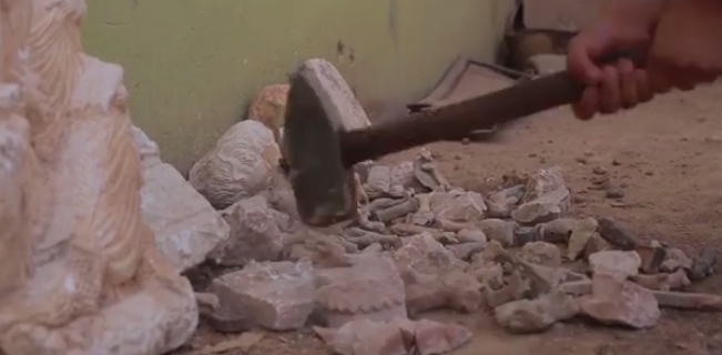 بالتزامن مع استمرار خسائره على جميع الجبهات .. تنظيم ” داعش” منشغل بتحطيم الآثار في دير الزور ! ( فيديو )