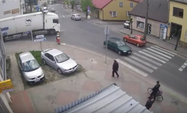 امرأة بولندية تختفي بعد أن تدهسها شاحنة ! ( فيديو )