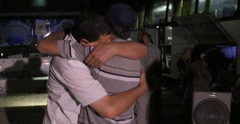 وصلت، الأربعاء، القافلة العاشرة لمهجري حي “الوعر” المحاصر من قبل النظام السوري في مدينة حمص (وسط)، إلى مركز إيواء في ريف محافظة إدلب.