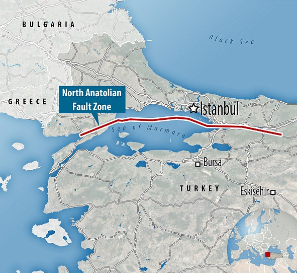 ويمكن أن يكون مركز الزلزال في منطقة “فالق” شمال الأناضول، على بوابات المدينة، وفقا لما ذكرته التوقعات الحالية. هذا وقد يكون الزلزال مدمرا للمدينة التركية التي تضم أكثر من 15 مليون نسمة، وآلاف السياح وفق ما نقلت قناة روسيا اليوم ، ويعتمد مدى هذا التهديد الزلزالي لمدينة اسطنبول، على قوة تشابك الصفائح، والمنطقة التي يضربها الزلزال.