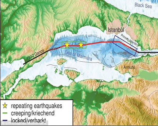 أما في الجزء الشرقي، وعلى مقربة من اسطنبول، تبدو الصفائح التكتونية مغلقة تماما، ما يؤدي إلى تراكم الطاقة وزيادة احتمال حدوث زلزال مدمر.