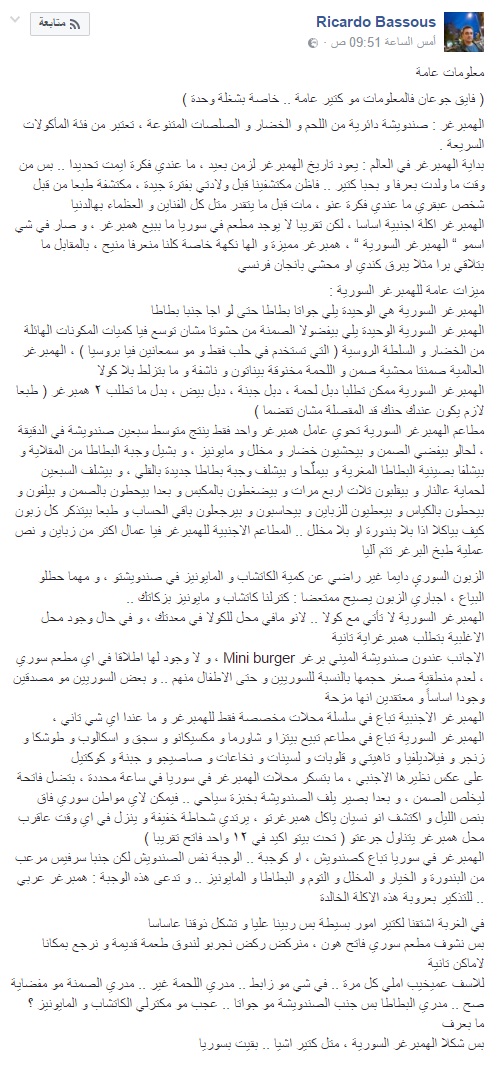 يا أخي السوريين عندون كل شي الو نكهة سورية حتى بلاسم ، همبرغر كلمة إنكليزية المصدر ومعناها بلاوي (برغر لحم خنزير) بس فقط بسوريا المحتوى ممكن يحتوي عكس الاسم