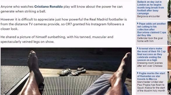 ونشرت صحيفة ديلي ميل البريطانية صورة للنجم البرتغالي أثناء استرخائه، مستعرضاً عضلات ساقيه، إذ وصفت الصحيفة، اللاعب الدولي البرتغالي بصاحب أقوى ساقين بين لاعبي كرة القدم.