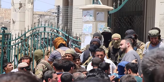 وأظهرت مقاطع مصورة إطلاق عناصر النصرة النار خلال المظاهرات التي خرجت ضدها في المدينة، وهتاف المتظاهرين “شبيحة شبيحة”.
