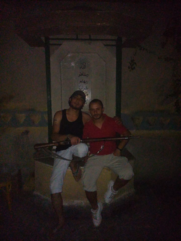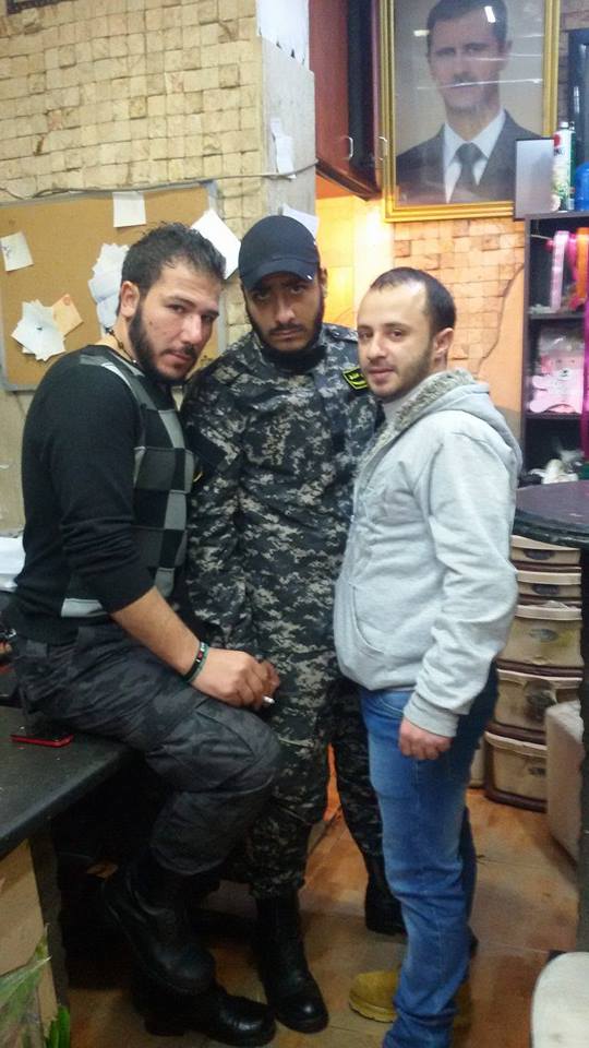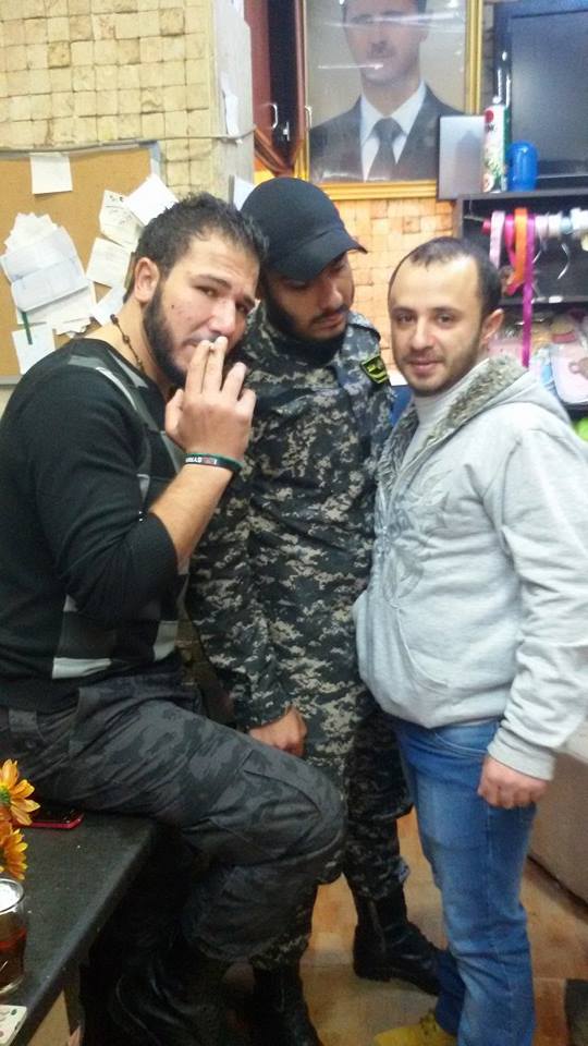 وظهر حسن في إحدى الصور، إلى جانب عنصر يحمل سلاحاً، وفيما تؤكد هذه الصور أن رواية الفاكهاني للصحيفة ليست إلا استدراراً للعطف وتصنعاً لمعاناة غير حقيقية، إلا أنه لا يمكن الجزم ما إذا كان عنصراً في إحدى الميليشيات النظامية (شبيح – كتائب بعث – فرع أمن – جيش – كتائب بعث – …) أو أنه مجرد موال مفتخر بأصدقائه المجرمين.
