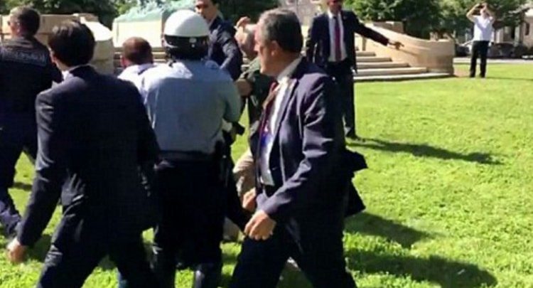 وذكرت شرطة واشنطن أن أعضاء حرس الأمن لأردوغان من بين 18 شخصاً يواجهون اتهامات اعتداء في أعقاب اشتباك وقع في 16 أيار/مايو بين متظاهرين مناهضين لأردوغان وحرس الأمن التركي خارج مقر إقامة السفير التركي.
